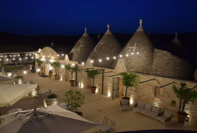 L’hotel dispone di uno spettacolare ristorante nei trulli da poco ristrutturati, che ospitavano in precedenza le abitazioni dei coloni e dei contadini che gestivano nel XVIII secolo l’area del Parco. Pertanto è possibile gustare piatti sempre nuovi e gustosi tra i coni dei trulli in pietra naturale preparati con cura dai nostri chef, in un ambiente romantico e accogliente al tempo stesso. Il ristorante è aperto a cena ma è possibile pranzare anche nei week-end previa prenotazione.