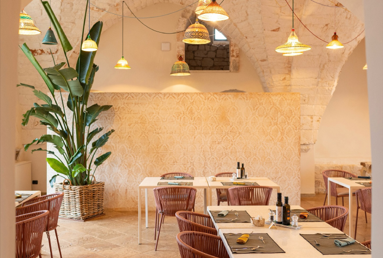 Il ristorante della Masseria Santo Scalone è un luogo magico, dove il tempo sembra essersi fermato; accolti nella sala da pranzo dalle tipiche volte in pietra o, seduti in terrazzo, circondati dalla bellezza degli ulivi e dal profumatissimo agrumeto, che sorprende in tutte le stagioni dell’anno. Le proposte di menù stagionali sono il frutto dell’amore del nostro team di cucina per la Puglia; pietanze di terra e mare, ma anche pane e focacce appena sfornate e dolci preparati in casa secondo la tradizione.