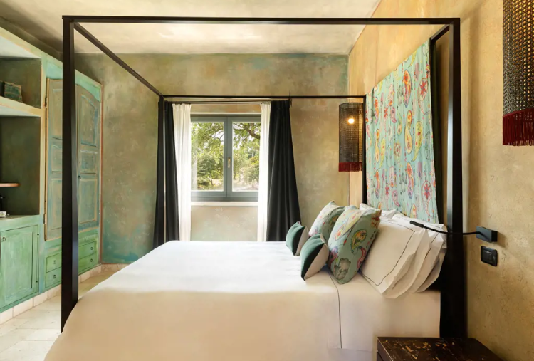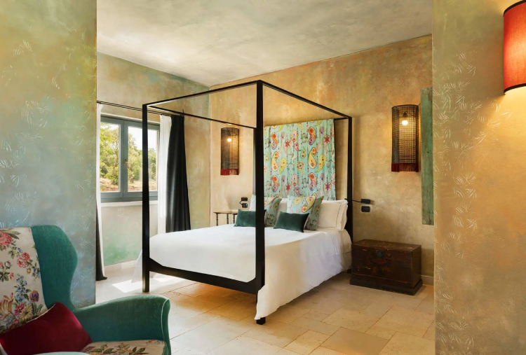 Nella vasta area della masseria, gli ambienti suggestivi ed i servizi offerti sono molteplici. Partendo dalle spaziose ed accoglienti camere e suites, dotate di ogni comfort, la maggior parte di esse nasconde spazi esterni privati, regalando un’esperienza sensoriale unica, grazie ai profumi dei fiori e delle erbe aromatiche che le circondano. Questo grande complesso di edifici rurali nasce sulle radici di quella che era la casa del signore e su quelli che erano gli alloggi dei contadini comprese le stalle, i depositi per foraggi e i raccolti. Le pareti mantengono la loro originaria struttura in pietra, ognuna è arredata in tema culturale differente con tessuti e mobilio unico nel suo genere, provenienti direttamente dai paesi a cui essa si ispira. Tutte le camere si trovano nel corpo centrale dell’antica masseria e, per la maggior parte, hanno l’ingresso rivolto sul largo cortile, che colorato dal vasto prato inglese, fornisce un tono vivace e luminosità all’area circostante. La struttura dispone di diverse tipologie di camere per rispondere ai desideri degli ospiti: una accogliente matrimoniale classic, le confortevoli e spaziose Superior, Privilege, Junior Suites e Suites per coppie e nuclei familiari.