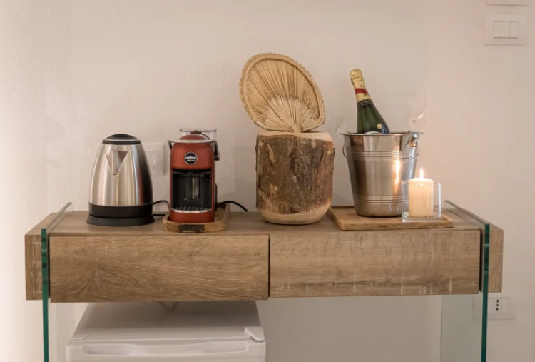La location dispone di un grazioso "cortile", in cui vi è possibile gustare le preparazioni salentine, circondato da dettagli raffinati che evocano le atmosfere dei riad marocchini. Le luci soffuse creano un'atmosfera magica, ideale per immergersi in un momento di puro relax. Comodi cuscini invitano a distendersi e lasciarsi coccolare. Ogni dettaglio è curato con attenzione per garantire un'esperienza indimenticabile. È un rifugio perfetto per chi desidera sfuggire alla frenesia quotidiana e immergersi in un mondo di lusso e benessere, nel cuore autentico e affascinante di Campi Salentina.