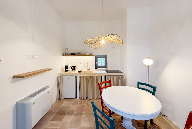 Dispone di 7 camere ognuna denominata con qualcosa che riporti al legame con la Puglia, come ad esempio la camera "Ulivo". Le camere sono private ed indipendenti, molte di esse anche con angolo cottura, spazi esterni dedicati e servizi moderni pensati per garantire il massimo del comfort e benessere. Ogni spazio è stato restaurato e pensato per accogliere chi vuole scoprire il cuore della Puglia, con un'architettura tradizionale e servizi moderni, creando un'esperienza equilibrata e piacevole.