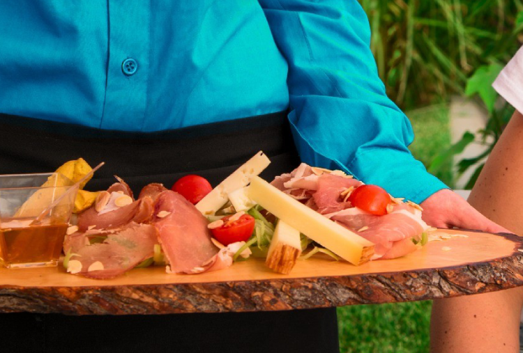 Antipasto centrale con tagliere di salumi e focaccia barese;