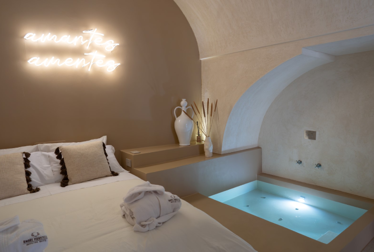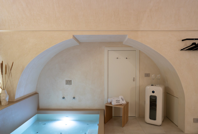 Nel cuore di Fasano, tra mare e ulivi, nascono le Dimore Pignatelli: rifugi di bellezza e autenticità. Ogni dettaglio è pensato per accogliere l'ospite in un’atmosfera elegante e rilassante, in suite che raccontano storia, emozioni e radici in cui accoglienza e benessere sono uno stile di vita.Suite Amphora è ispirata alle antiche anfore in ceramica simbolo di radici profonde e storie da raccontare, ed è una suite intima e sofisticata, dotata di una mini-piscina riscaldata e arredi eleganti. Un invito per chi cerca riservatezza, romanticismo e puro relax. Ogni dettaglio è stato pensato