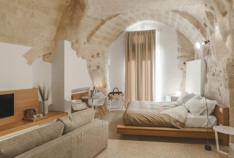 L’hotel La Dimora di Metello si trova nel centro dei Sassi di Matera. La Dimora di Metello si estende per circa 300 mq ed è il luogo ideale per chi cerca un’autentica esperienza da vivere in uno dei luoghi più antichi e affascinanti del mondo. Ogni ambiente è caratterizzato da un perfetto equilibrio tra il design moderno ed elegante e l’unicità del contesto storico rupestre dentro il quale è stato ricavato. Questa sintesi raffinata offre agli ospiti un senso di calda accoglienza. Le 4 camere in grotta sono eleganti e luminose, dotate di ogni comfort per godere di un sog