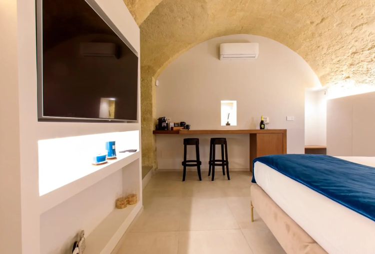 Iris Luxury Suite, ad Altamura, è un affascinante dimora di eleganza e relax, ideale per chi è alla ricerca di una fuga d'amore, lontano dallo stress giornaliero, vivendo momenti esclusivi di pace e benessere. Situata in una storica struttura risalente al 1200, la suite ha mantenuto il fascino d'epoca pur offrendo tutti i comfort moderni. Il fiore all'occhiello della suite è una spaziosa vasca idromassaggio, con accanto anche una comoda doccia emozionale, per chi preferisce una soluzione più veloce e pratica, senza rinunciare al comfort e al relax. La cromoterapia, presente sia in bagno privato che