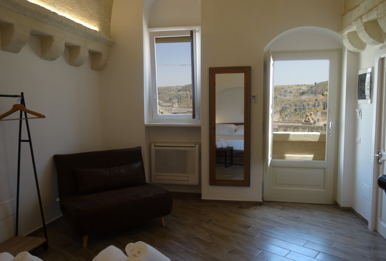 La dimora delle 3 Zie a Matera, è una antica dimora, dove poter immergersi nella storia più lontana della Civita. Pur essendo centralissima è possibile godere della pace più assoluta, per via della collocazione strategica. La struttura è caratterizzata da alcune camere ampie scavate nella roccia ed altre con vista panoramica sui Sassi, dove poter vivere un'esperienza magica! Completamente ristrutturata e pur lasciando intatto ogni segno della storia, gode di tutti i comfort che un ospite può desiderare. La prima colazione è stata studiata per tutte le esigenze, con la massima ac