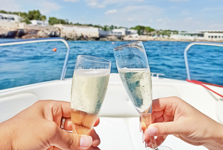 Aperitivo a bordo con flûte di prosecco e taralli pugliesi;